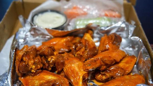 Mild, Medium, or Hot, comes with blue cheese, fresh celery & carrots.