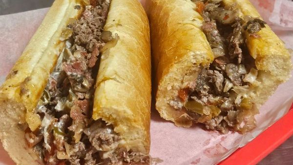 Steak, mushrooms, onions, peppers, 4 cheeses